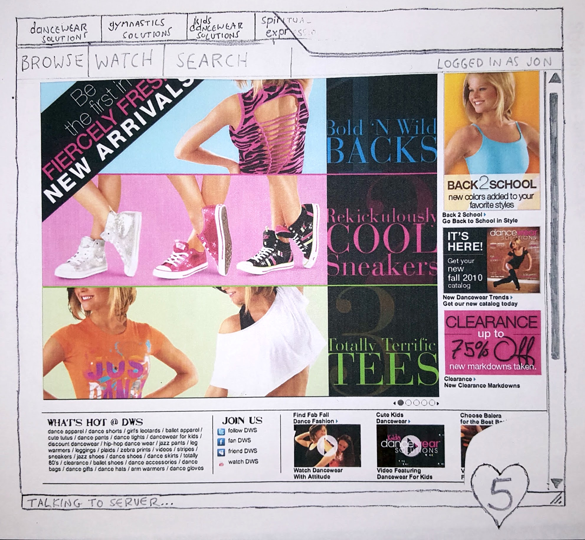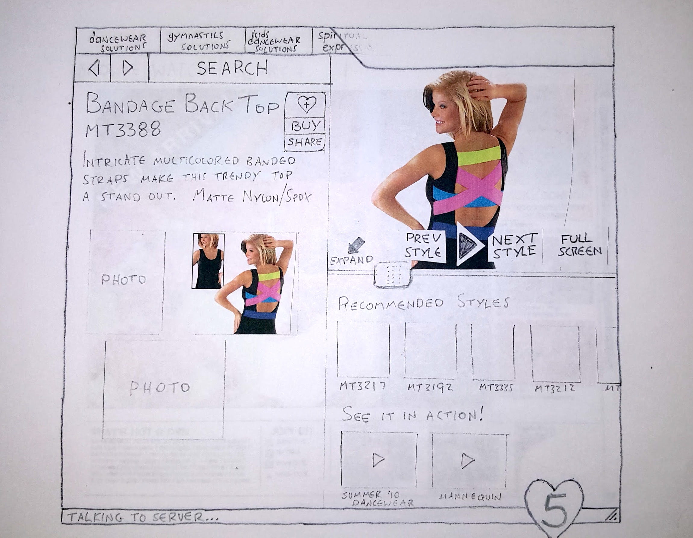 I designed an interactive Style Browser that combines a browsable costume catalog with integrated video showcases. The system allows users to explore costumes through both static imagery and performance videos, giving dance instructors the confidence to make purchasing decisions without seeing the costumes in person.
